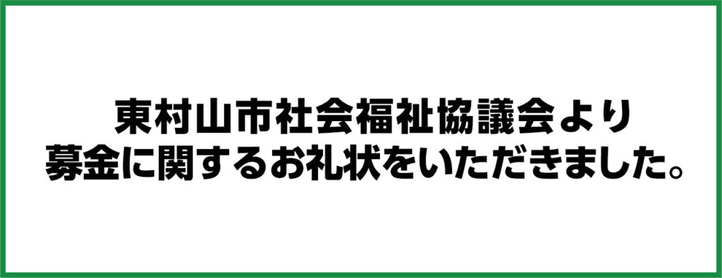 このたび、東村山市社会福祉協議会より募金のお礼状をいただきました。