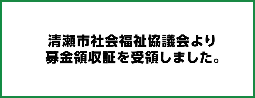 このたび、清瀬市社会福祉協議会より募金の領収証を受け取りました。